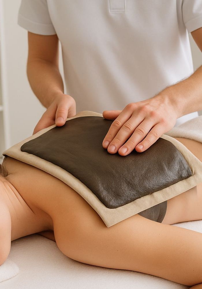 Unsere Fangoanwendung besteht aus einem erwärmten Naturmoorkissen, als Wärmeträger und aus einer Naturmoorpackung. Bei der Naturmoorpackung handelt es sich um fest gepresstes Naturmoor. Die darin enthaltenen verschiedenen Wirkstoffe, dringen durch die Wärme tief ins Gewebe ein. Dadurch und durch die angenehme Wärme erfährt der Körper eine langanhaltende entspannende Wirkung.
